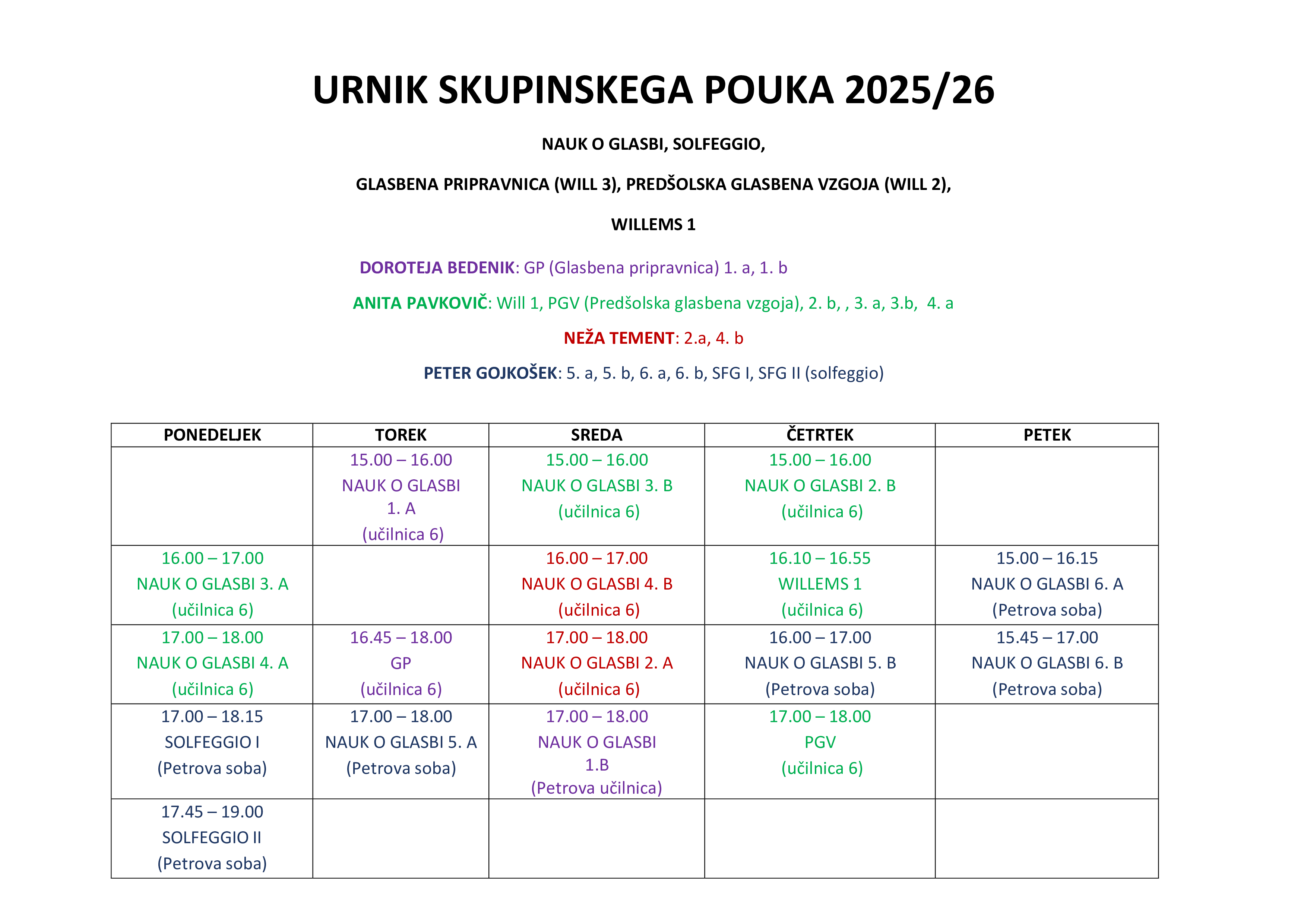 URNIK PLESNE PRIPRAVNICE IN BALETA